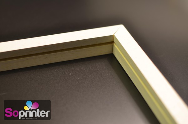Nous réalisons pour vous un cadre en bois blanc pour l'accroche de votre visuel,