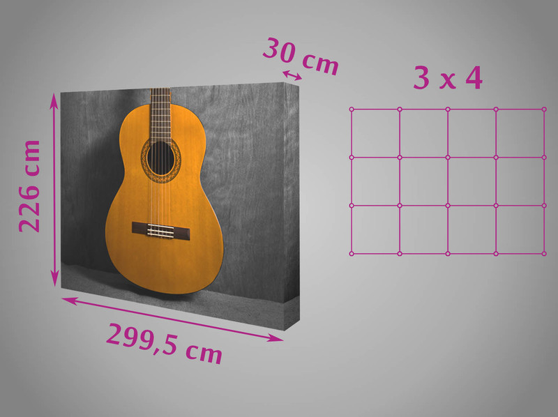Il comprend votre visuel imprimé et confectionné avec la structure vous permettant de le mettre en place comme sur la photo de présentation produit.